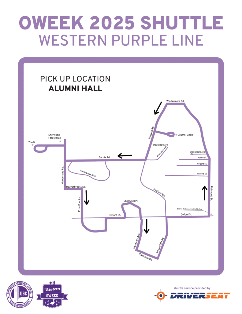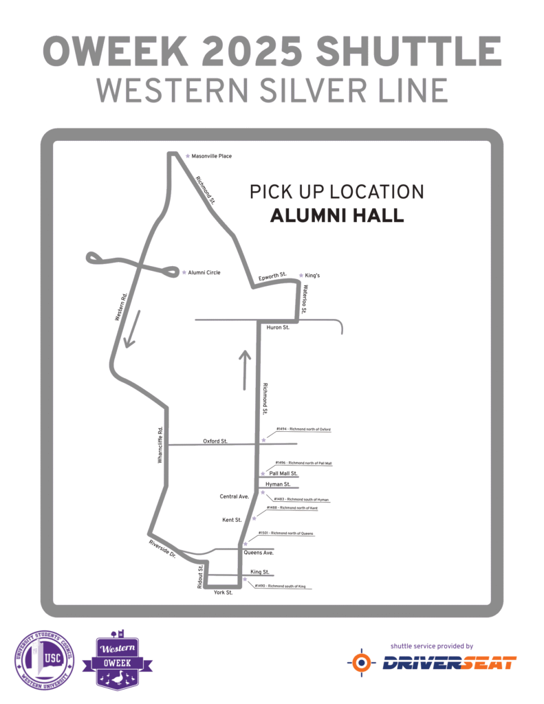 During OWeek, shuttles will be operating nightly, ensuring seamless transportation as you return from our events. Tell the driver where you live and they will drop you off at the closest intersection within the highlighted routes. Assistance will be available at Alumni Hall.